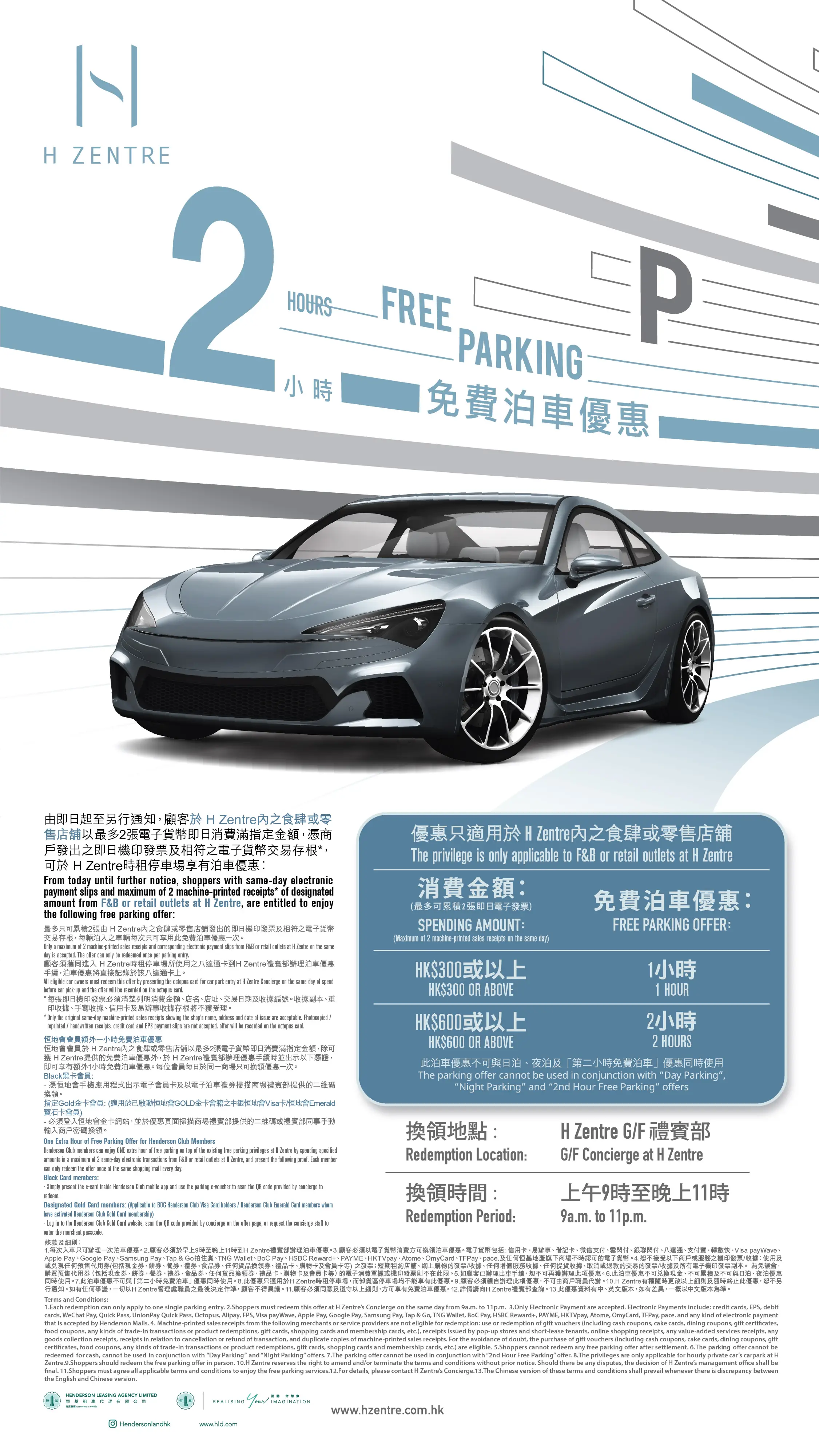 會員亦可使用積分 3000 分及 6000 分換領 1 小時免費泊車或 1 小時免費代客泊車。